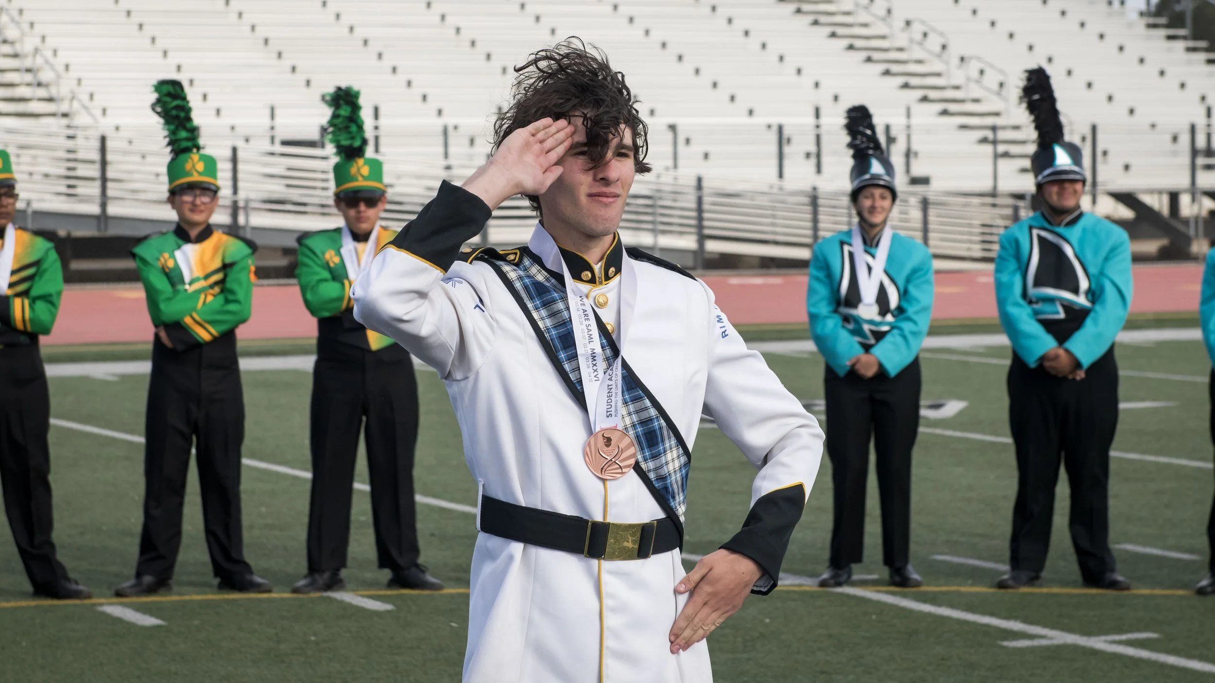 Student Academy of Musical Leaders (SAML) was founded in 2020 by a close-knit group of former Drum Majors and Music Leaders who wanted to provide student leaders a competitive circuit that pushed the limits of their creativity, offered support and guidance in their growth as young leaders, and assisted them in refining their skills as musicians and creators. This led to the creation of the “T Pattern” and other innovative performance formats and educational programs.